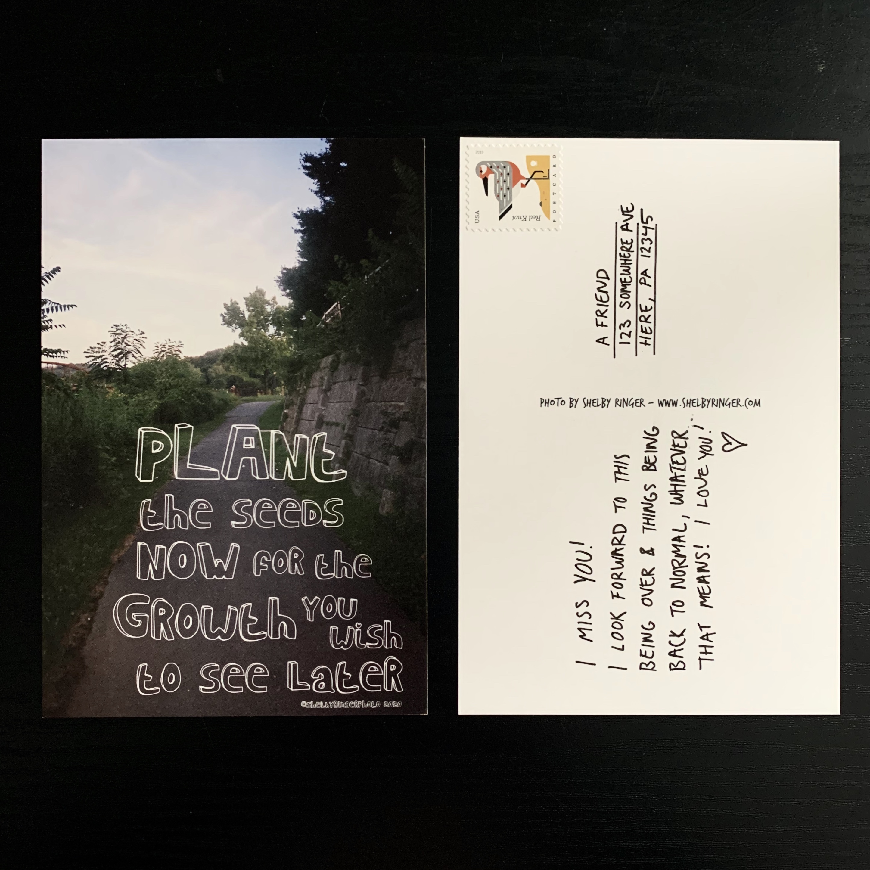 Growth Postcard set includes: 2 heavyweight matte 4×6 postcards, 1 of which is stamped for you to send to a friend (Price includes shipping in the US)